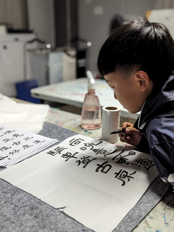 Use an interesting and rigorous teaching method to skillfully mobilize students' interest in learning calligraphy. Chinese calligraphy mainly focuses on learning the frame structure, stroke characteristics, and brush-using techniques of official script, regular script, and running script, as well as learning art knowledge of calligraphy such as the usage of ink, style, and seal.